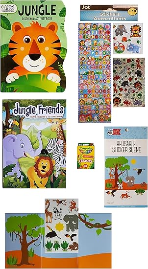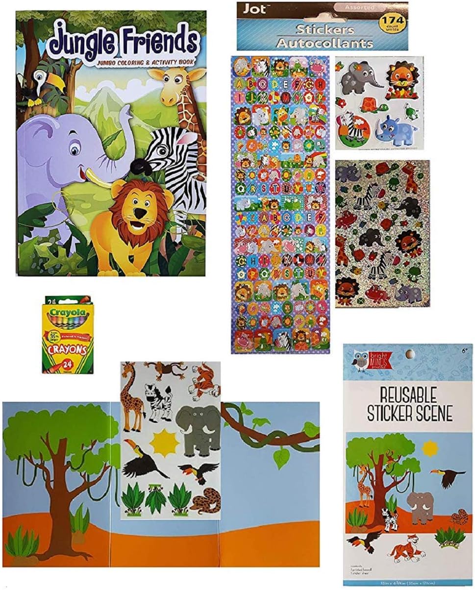 Coloring Activity Book Reusable Sticker Scene Jungle Animals Coloring And Activity Set 174 Stickers And Crayola Crayons 4 Piece Gift Set For Kids Mixed Drawing Sketch Pads